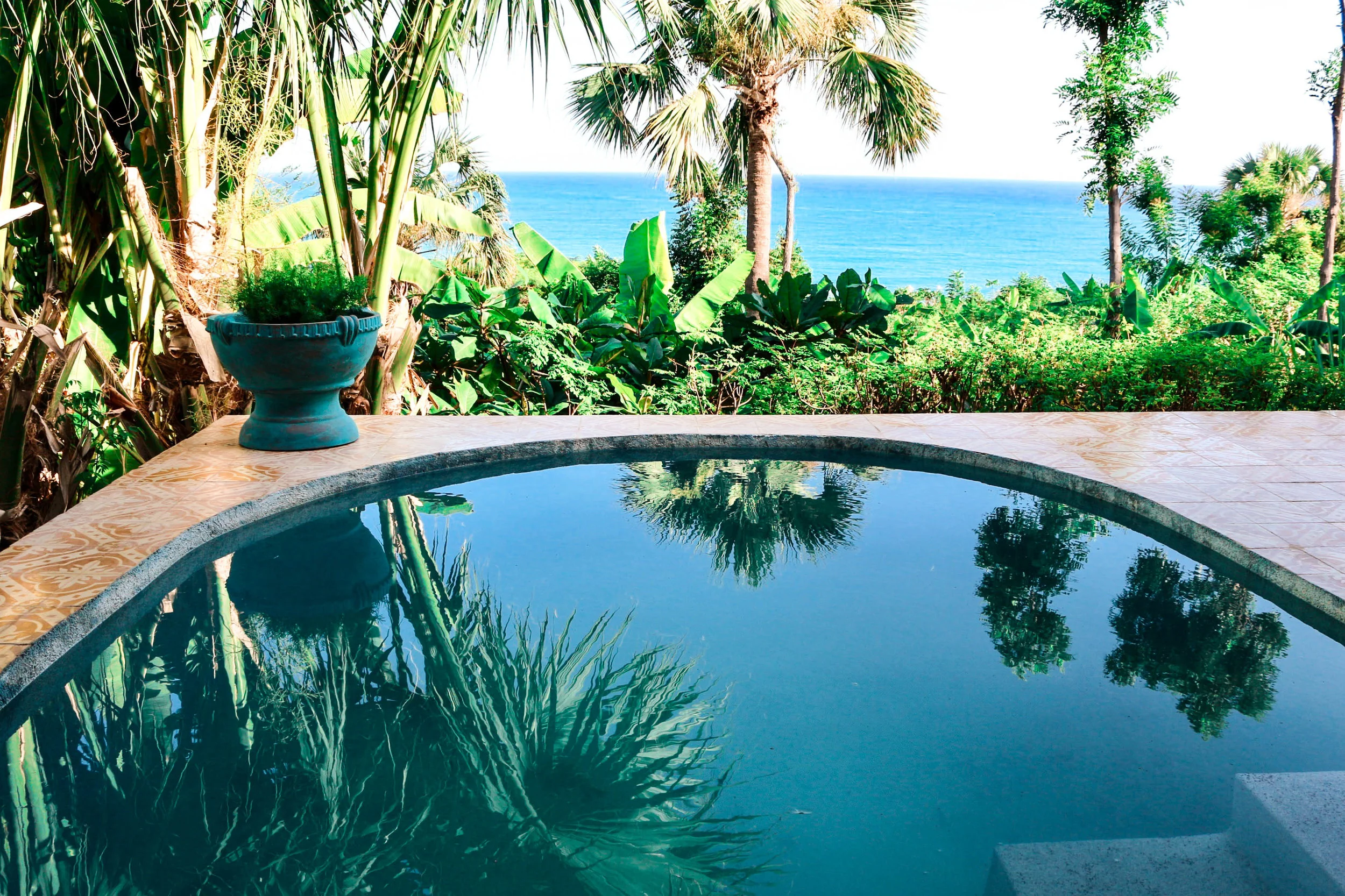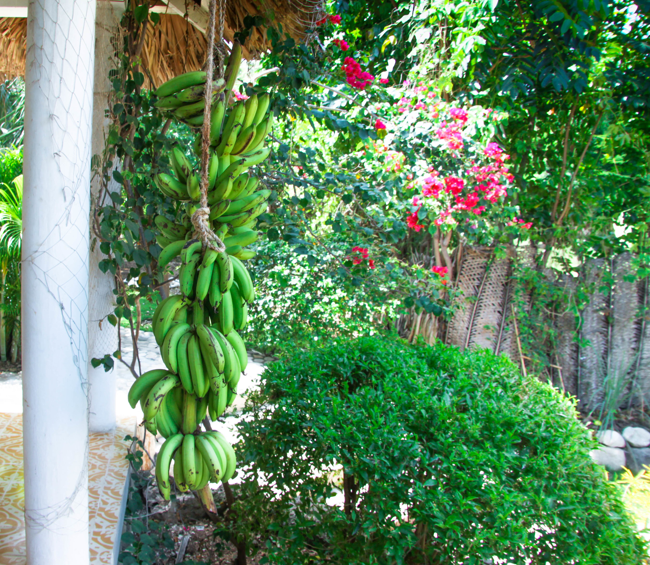 The buildings were constructed by longtime Haitian expat, Janet, and a crew of 30 local craftsmen in 2015 using local materials, and traditional Haitian building methods. Design features include hand-carved french doors, a sweeping mosaic veranda and signature thatch roofing. Our water flows fresh from the capped spring high in the mountains. Inquire about renting the entire property today.